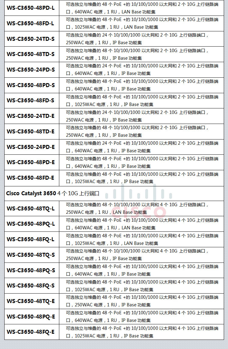 产品型号:WS-C3650-48PS-L