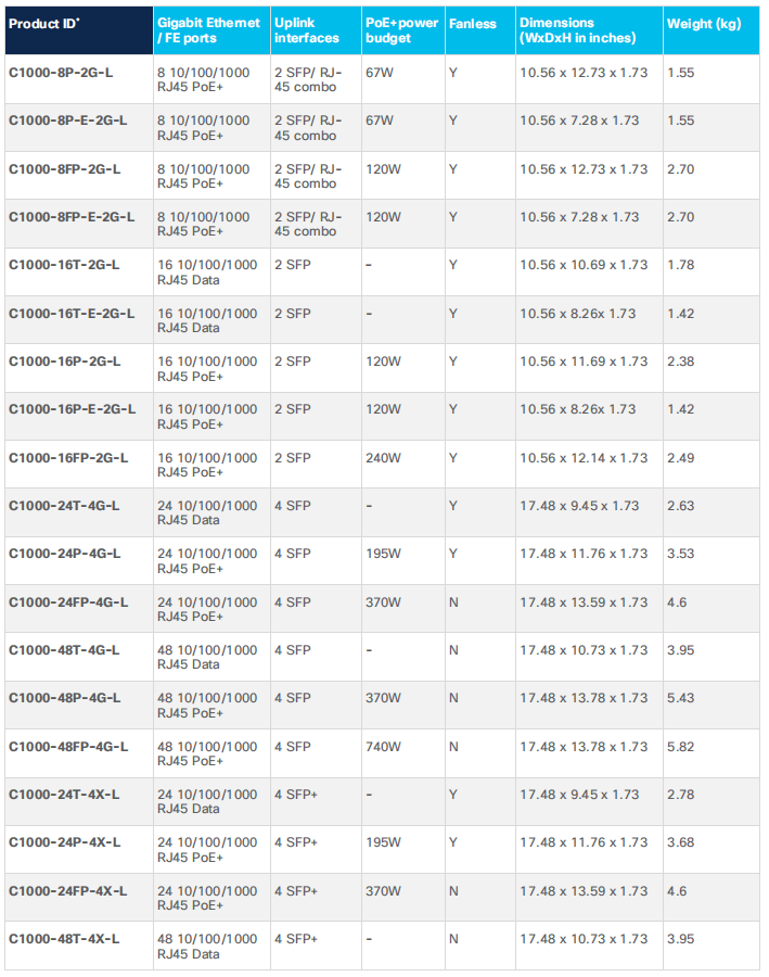 C1000-48P-4X-L 48 10/100/1000 RJ45 PoE+ 4 SFP+